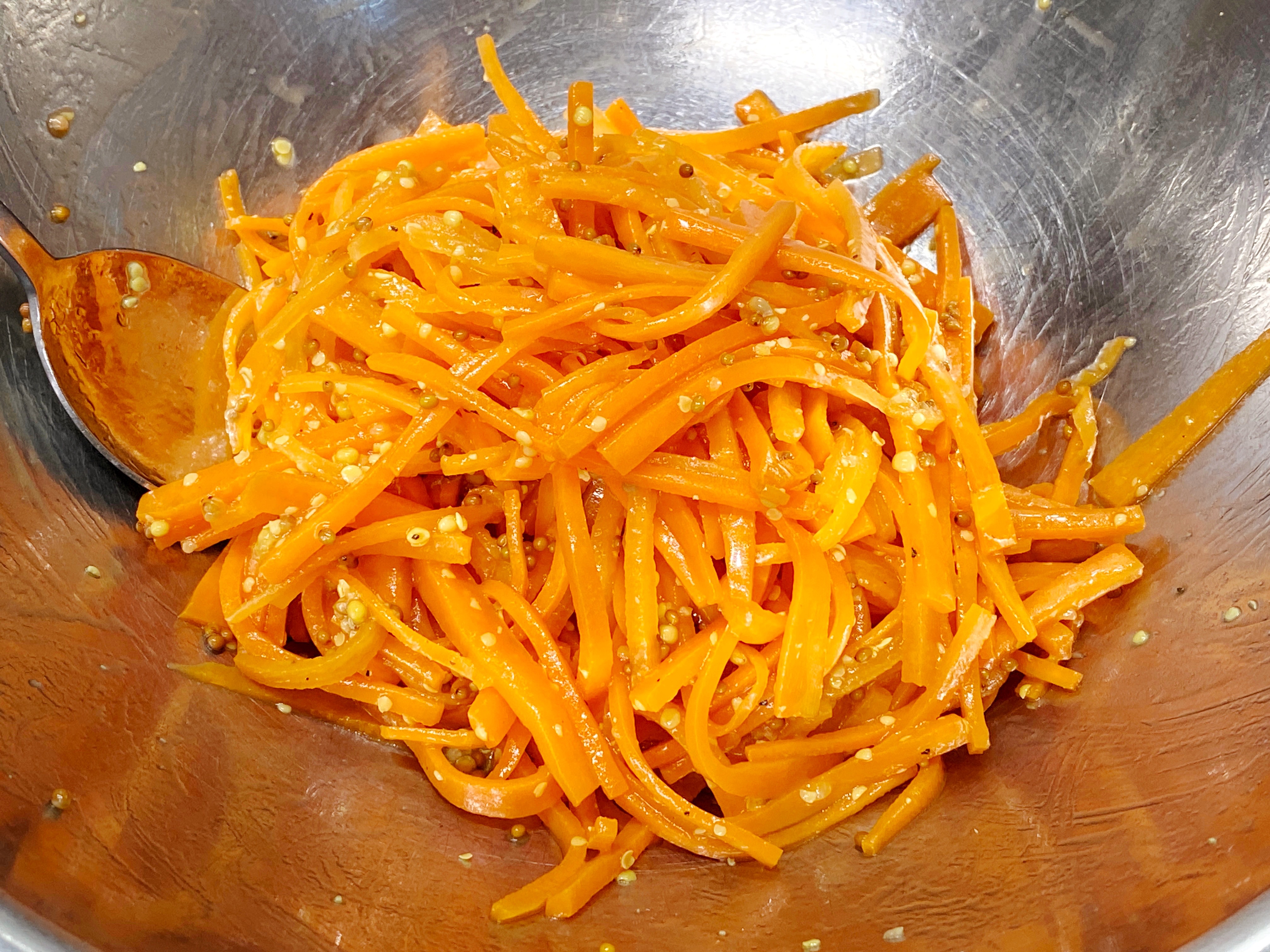 당근라페 기본 재료는 당근 1~2개, 소금 1ts, 레몬즙(식초로 대체가능) 1T, 올리브유 2T, 꿀 1T, 홀그레인머스타드 1~1.5T입니다. 입맛에 따라 들어가는 재료는 적당히 조절해 만드실 수 있습니다. 만드는 방법은 생각보다 간단해서 요리 초보자분들도 쉽게 만들 수 있습니다.